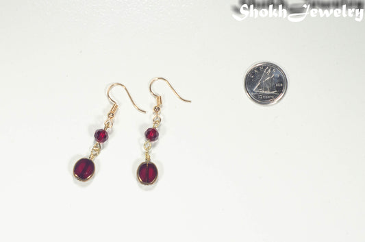 Dark Red and Gold Glass Bead Earrings