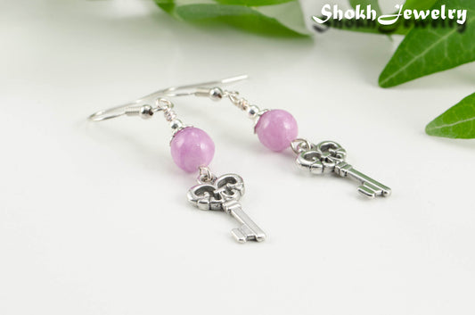 Light Purple Quartzite and Key Charm Dangle Earrings