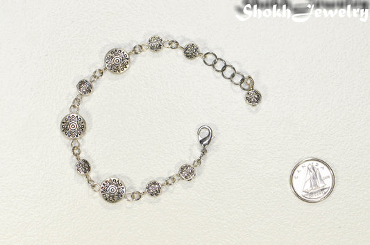 Tibetan Silver Flower and Green Aventurine Link Bracelet