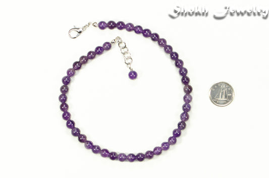 6mm Amethyst Anklet for Women, February Birthstone Jewelry