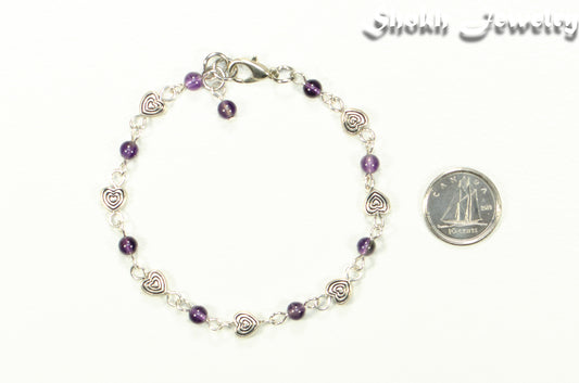 Handmade 4mm Amethyst Link Bracelet for Women