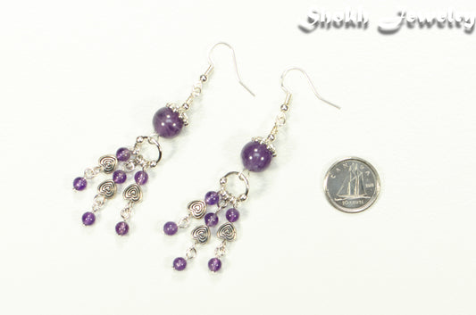 Natural Amethyst and Heart Chandelier Earrings
