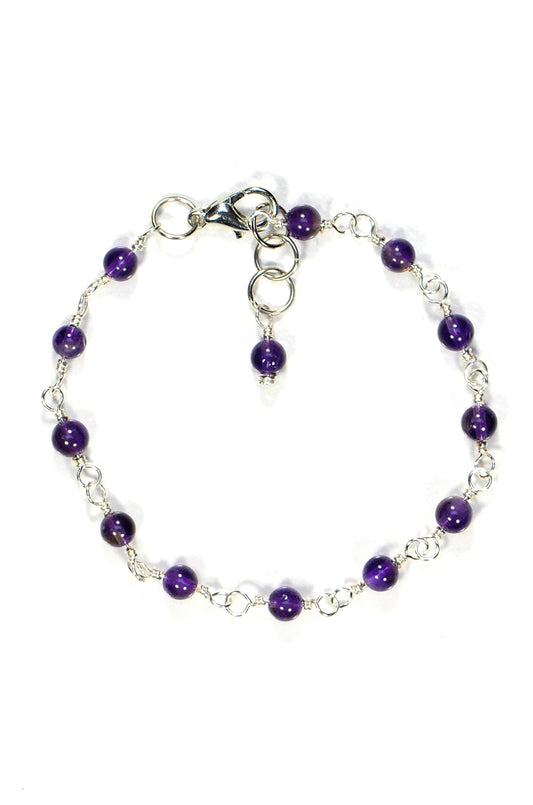Handmade 4mm Amethyst Link Anklet for Women