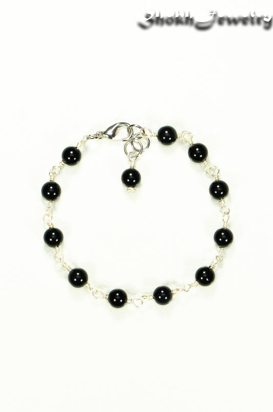 6mm Black Onyx and Stainless Steel Chain Anklet
