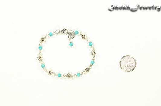 Tibetan Silver Flower and Turquoise Howlite Link Anklet