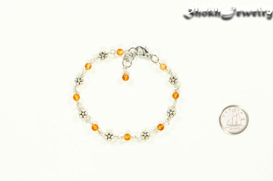 Tibetan Silver Flower and Carnelian Link Anklet
