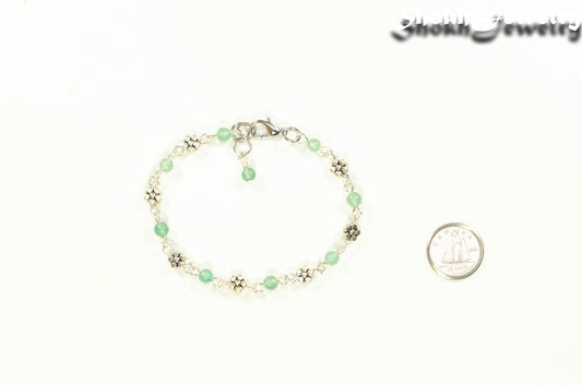 Tibetan Silver Flower and Green Aventurine Link Anklet
