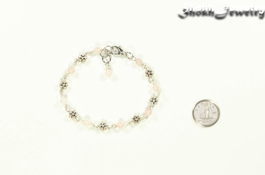 Tibetan Silver Flower and Rose Quartz Link Anklet