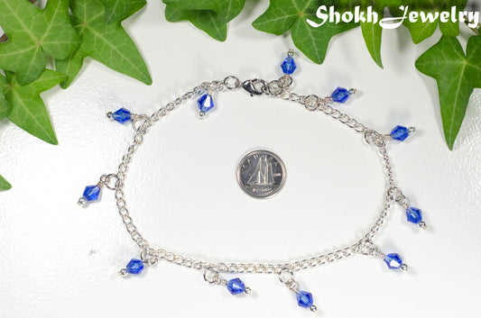 Navy Blue Glass Crystal Dangle and Chain Anklet