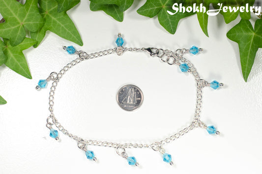 Aqua Blue Glass Crystal Dangle and Chain Anklet