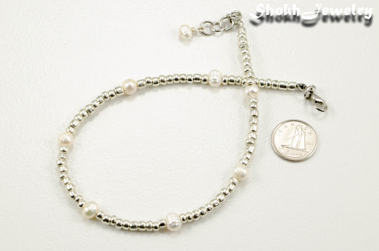 Freshwater Pearl and Stainless Steel Chain Anklet
