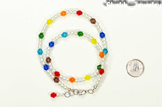 Rainbow Glass Crystal Bead and Pearl Anklet