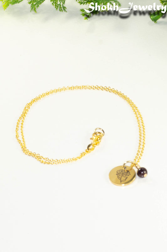Gold Plated January Birth Flower Necklace with Garnet Birthstone Pendant