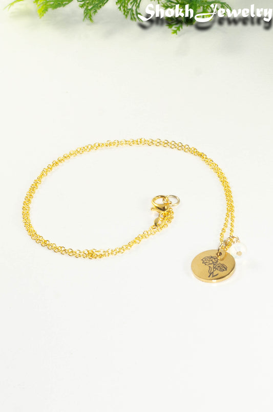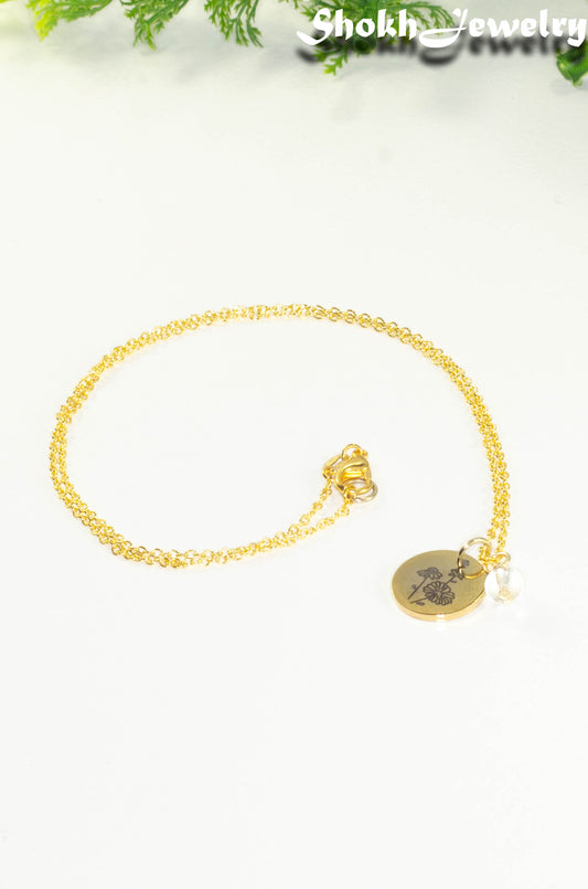 Gold Plated April Birth Flower Necklace with Clear Quartz Birthstone Pendant