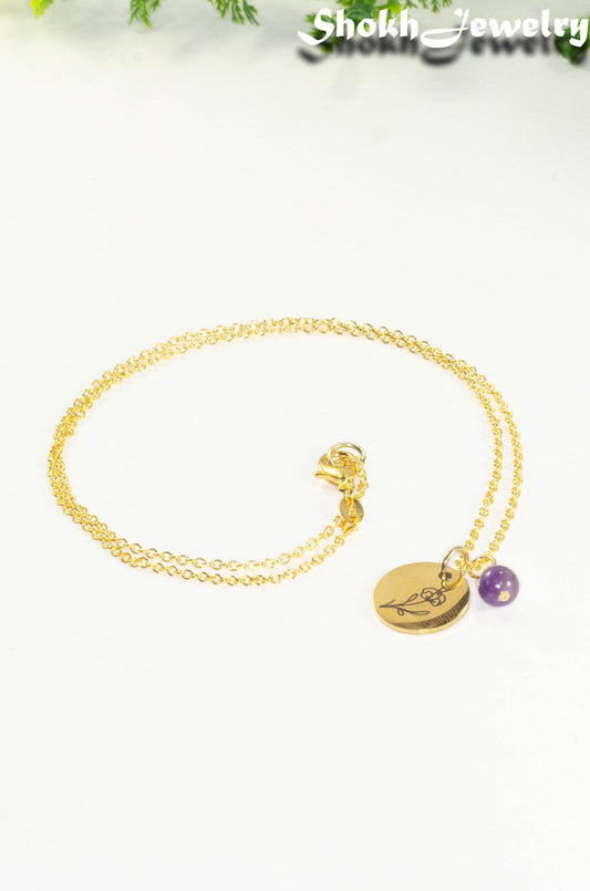 Gold Plated February Birth Flower Necklace with Amethyst Birthstone Pendant
