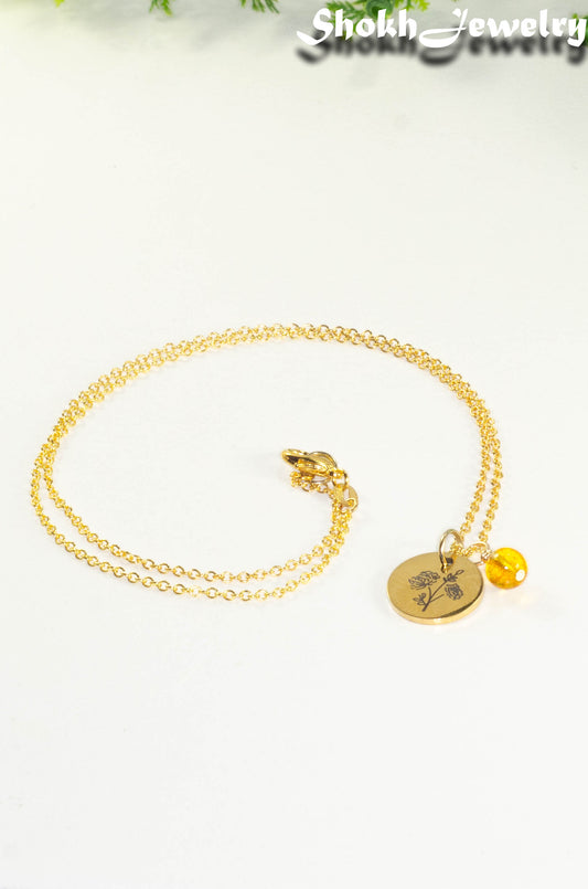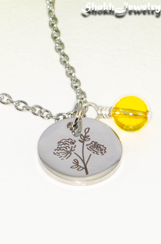 November Birth Flower Necklace with Citrine Birthstone Pendant
