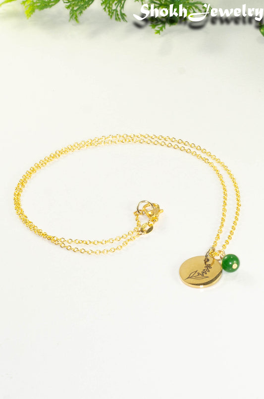 Gold Plated May Birth Flower Necklace with Emerald Birthstone Pendant