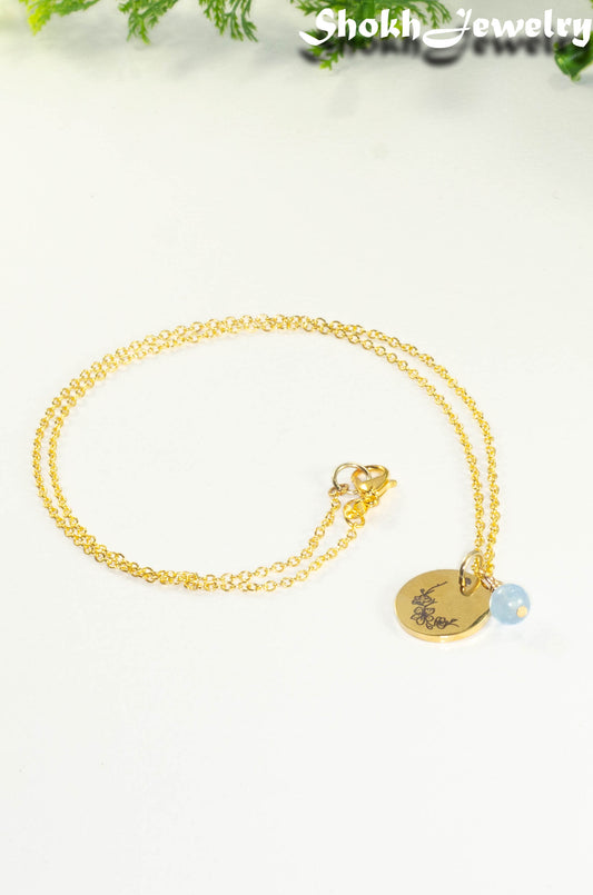 Gold Plated March Birth Flower Necklace with Aquamarine Birthstone Pendant