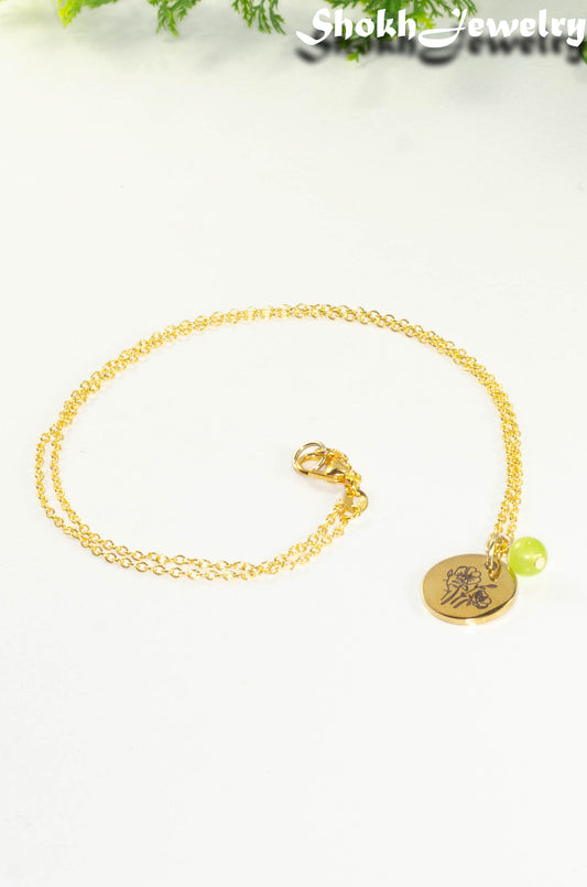 Gold Plated August Birth Flower Necklace with Peridot Birthstone Pendant