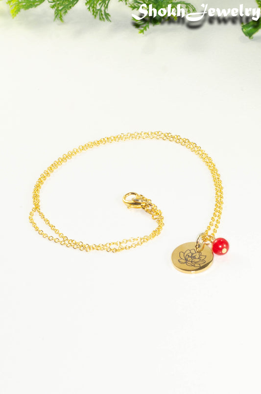 Gold Plated July Birth Flower Necklace with Red Ruby Birthstone Pendant
