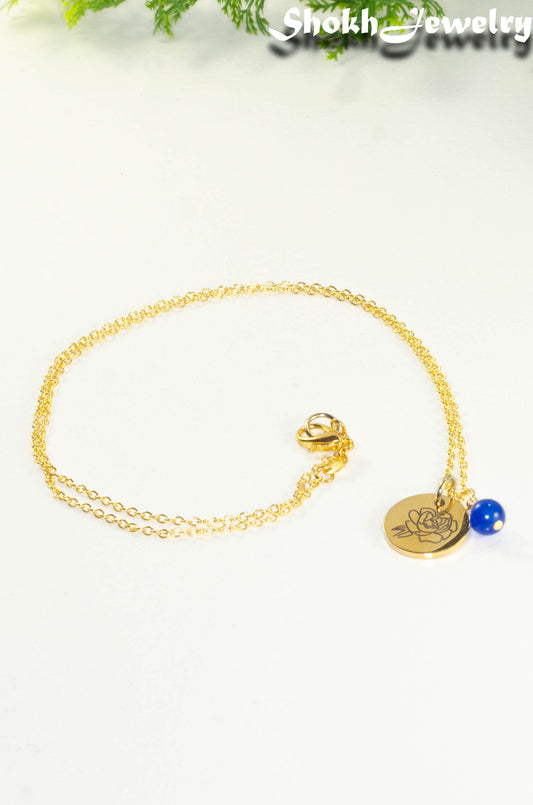 Gold Plated September Birth Flower Necklace with Sapphire Birthstone Pendant