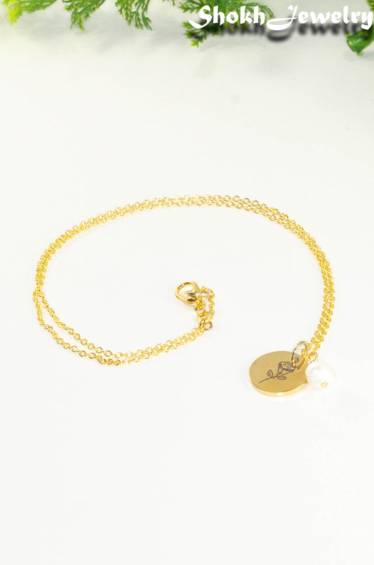 Gold Plated June Birth Flower Necklace with Freshwater Pearl Pendant