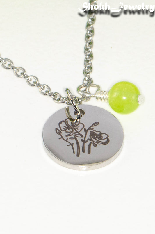 August Birth Flower Necklace with Peridot Birthstone Pendant