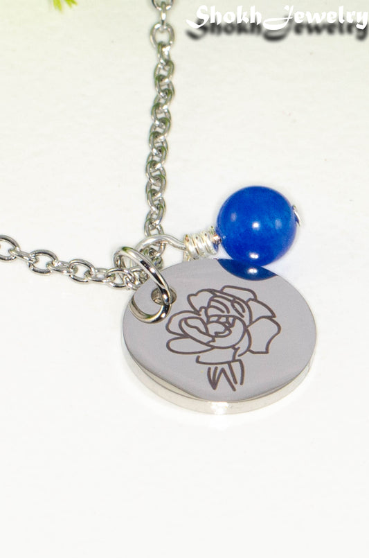 September Birth Flower Necklace with Sapphire Birthstone Pendant