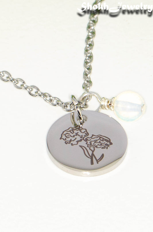 October Birth Flower Necklace with Clear White Opalite Pendant