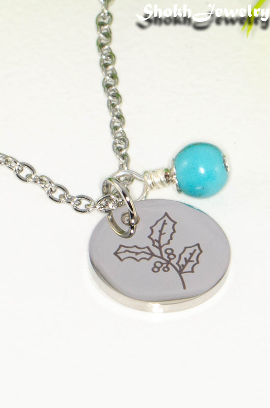 December Birth Flower Necklace with Turquoise Howlite Birthstone Pendant