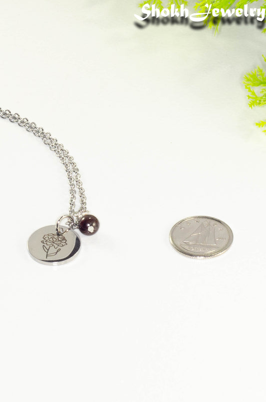 January Birth Flower Necklace with Garnet Birthstone Pendant