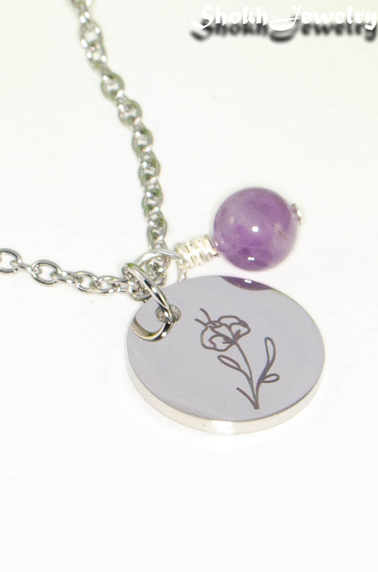 February Birth Flower Necklace with Amethyst Birthstone Pendant