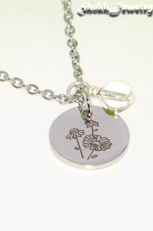 April Birth Flower Necklace with Clear Quartz Birthstone Pendant