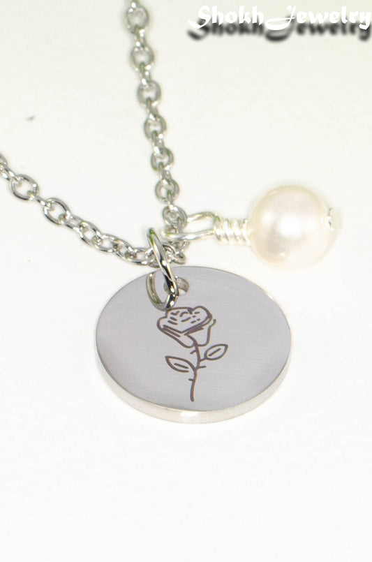 June Birth Flower Necklace with Freshwater Pearl Birthstone Pendant