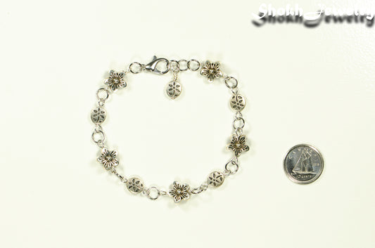 Tibetan Silver Flower Link Bracelet for Women