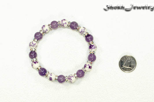 8mm Amethyst and Purple Flower Ceramic Bead Bracelet