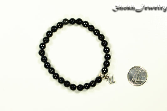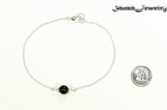 Minimal Black Obsidian Bracelet, Silver Plated Dainty Chain Bracelet