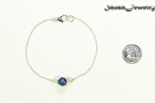 Minimal Lapis Lazuli Bracelet, Silver Plated Dainty Chain Bracelet