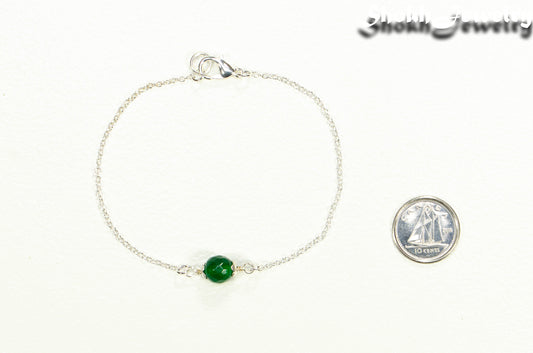 Minimal Green Emerald Bracelet, Silver Plated Dainty Chain Bracelet