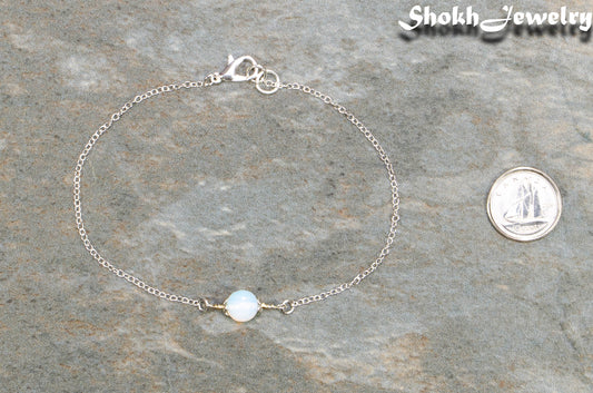 Minimal White Opal Bracelet, Silver Plated Dainty Chain Bracelet