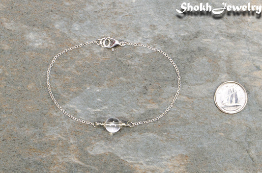 Minimal Clear Quartz Bracelet, Silver Plated Dainty Chain Bracelet