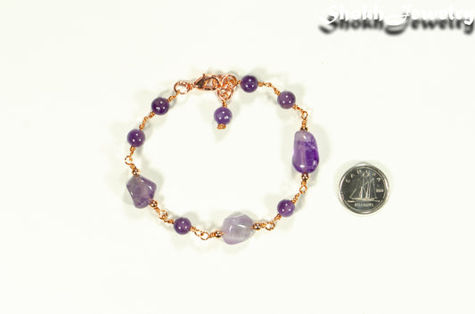 Chunky Amethyst Nugget and Beads Link Bracelet
