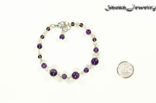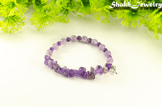 Amethyst Chip and Beads Bracelet with Initial, February Birthstone Jewelry