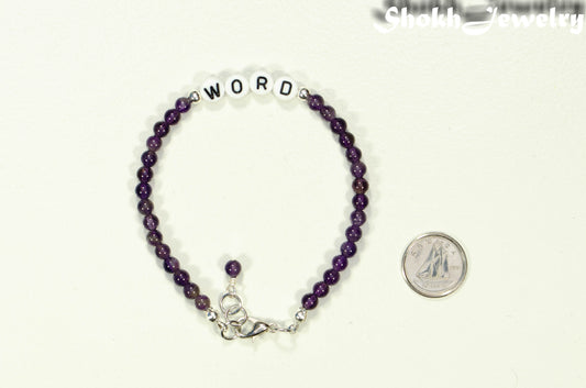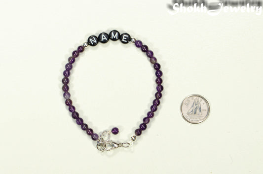 Personalized Amethyst Name Bracelet with Clasp, February Birthstone jewelry