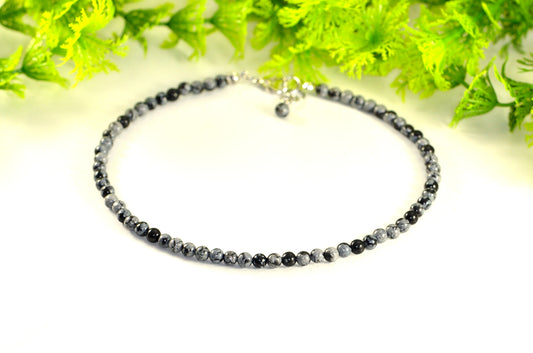 4mm Snowflake Obsidian Crystal Choker Necklace