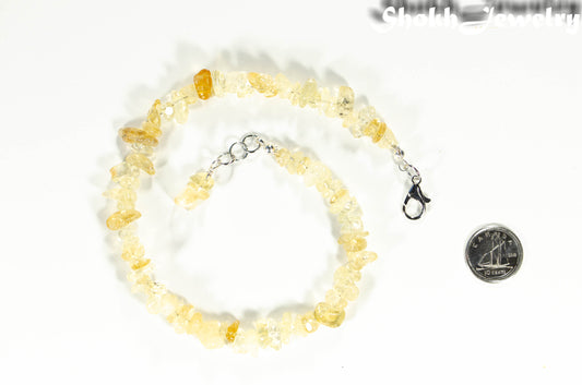 Natural Citrine Crystal Chip Anklet, November Birthstone Jewelry