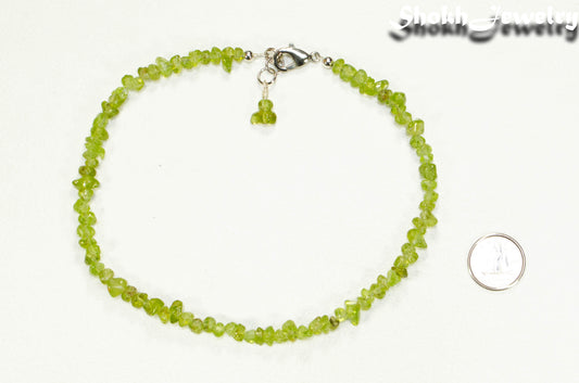 Natural Peridot Crystal Chip Anklet, August Birthstone Jewelry
