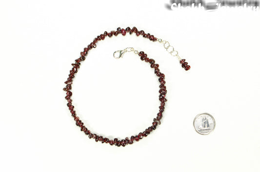 Natural Garnet Crystal Chip Anklet, January Birthstone Jewelry