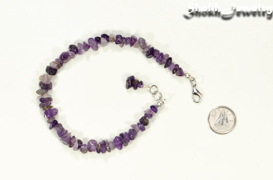 Natural Amethyst Crystal Chip Anklet, February Birthstone Jewelry