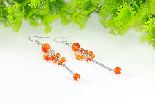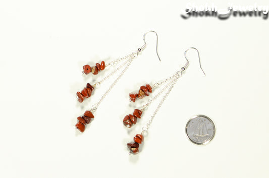 Long Silver Plated Chain and Red Jasper Chip Earrings